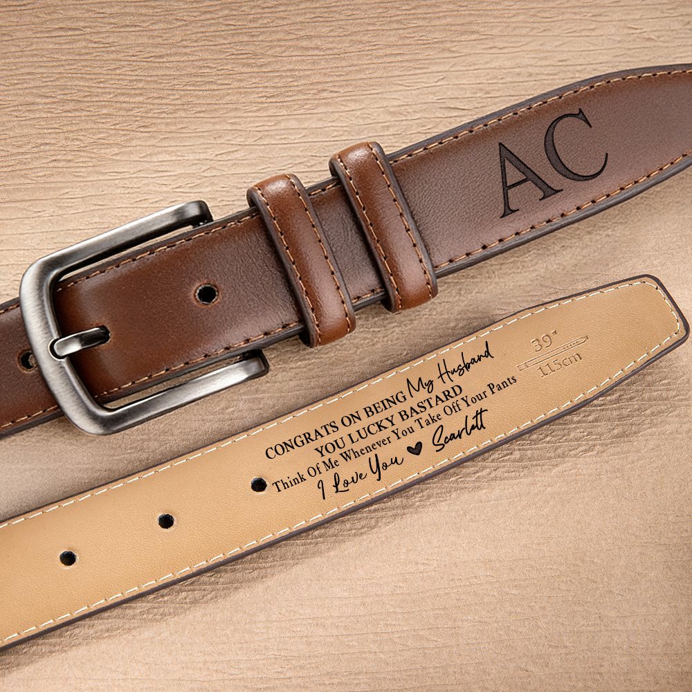 Con quattro colori a scelta, è possibile incidere un messaggio, un nome o una data significativa sulla cintura e scegliere di personalizzare il fronte e il retro con la scritta "CONGRATS ON BE My Husband You Lucky Bastard Think Of Me Whenever You Take Off Your Pants I Love You Name On The Back", rendendo questo regalo unico per gli uomini.